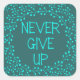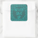 Elegant motivational quote never give up teal square sticker