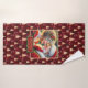 Each towel is fully customisable with your family name, initials, or a special holiday message, making it a unique keepsake or a thoughtful Christmas gift. The cosy cranberry red tones and shimmering gold details create a warm and inviting look, while the nostalgic Mr. & Mrs. Claus artwork adds a touch of vintage charm.