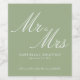 A minimalist sage green and white theme featuring Mr and Mrs in stylish script typography .