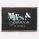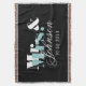 Cute Mr and Mrs throw blanket for newlywed couple. Romantic wedding gift idea for newly weds / just married groom and bride / husband and wife couple. Include wedding date. Elegant script typography. Turquoise blue white and black colours.