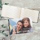 This Mr & Mrs Wedding Guest Book features bold white lettering and elegant script overlaying a photo of the bride and groom. To change or delete the photo and text on all sides, click on the personalise button.