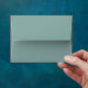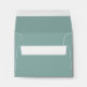 Minimal A2 wedding invitation mailing envelopes feature a beautiful muted blue green printed background colour (can be modified). Personalise the elegant white return address text on the back flap with your return address.