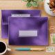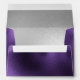 Elegant special occasion envelope done in graphics of a dusty purple foil look, on the outside, and a silver foil, on the inside of the envelope. Silver edged white text areas for addresses, with fully custom black text, on the backside.