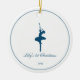 Personalize this modern and elegant 'My First Christmas' ornament with your baby girl's photo, her name, and the year of her birth. Featuring a white background and a delicate nostalgic blue colored ballerina. Photo tip: crop photo to a square format before uploading to the site.