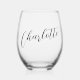 Stemless wine glasses with your custom name in an elegant calligraphy style script font.