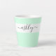 Personalized latte mug with elegant script typography and minimalist design. The template is set up for you to add your name in black and white. A modern, simple and trendy design in pretty mint green or, if you prefer, you can change the background color. (message me if you need assistance).
