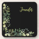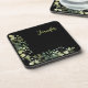 Elegant named botanical frame leaves black coaster