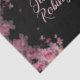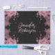 Modern dark black design with calligraphy writing and transparent pink watercolor flowers.