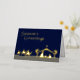Simple but still elegant. Season's Greetings and a Nativity scene including three wise men are in gold foil against a background of deep blue representing a night sky and beige sand. *****Complete the inside with your own personalised Christmas message and signature. The font colour size and type style of the message/signature can be changed to suit.