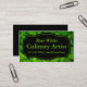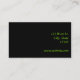 This business card features a black and green design with wood sorrel, a wild edible plant, as the background. It is simple yet striking with bright colours and an attractive background. The information given on the card is simple but leaves lots of room for added information on the back of the card if needed.