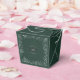 A sophisticated minimalist wedding favor box featuring a deep green background adorned with delicate white botanical illustrations. The center monogram adds a personal touch, making it perfect for weddings, anniversaries, or garden-themed celebrations. This favor box combines a modern design with nature-inspired elegance — ideal for packing small treats, candles, or keepsakes. The leafy frame detailing enhances the natural, serene aesthetic while maintaining a clean and timeless look.