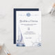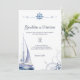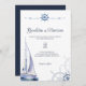 The navy blue design features an elegant watercolor sailing yacht for your nautical wedding.