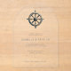 This elegant wedding invitation features a classic nautical theme with an ornate ship's wheel at the top, rendered in metallic and wooden textures. The muted earth tones of browns and golds contrast beautifully against a clean white background, creating a sophisticated look. The layout is vertically aligned with ample negative space, enhancing readability and flow, while the serif font adds a touch of traditional elegance. Perfect for couples who love maritime motifs, this design conveys a mood of adventure and formality, ideal for a memorable celebration by the sea.