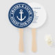 Elegant nautical wedding ceremony program schedule Hand Fan for guests. Add your own personalised wedding ceremony itinerary timeline schedule. Classy script typography template for couple getting married. Personalise with name and order. Navy blue and white colours with boat anchor. Great for summer destination beach wedding.