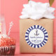 Customise this elegant and stylish, modern Nautical Wedding Sticker. Navy Blue and white striped pattern design with a navy ship anchor at the top. A template for an easy customisation of your wedding details such as names of bride and groom, and date of wedding. Same design is available in other matching wedding stationary supplies to carry the nautical wedding theme in style.