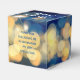2" x 2" x 2" favour boxes feature an all-over elegant design of navy blue, royal blue and gold blurred lights bokeh with your name on the top, Quinceañera on the front and a personal thank you message on the back. Change the fonts, font colours and the wording. MATCHING invitations and more in our store --> http://bit.ly/2JGREwA <--