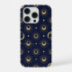 Elegant Navy and Gold Celestial Moon & Sun Pattern iPhone Case