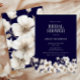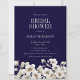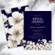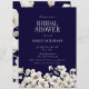 This elegant navy & white floral bridal shower invitation features fall & winter flowers. Navy background shown with white text and white wedding flowers. Background of bigger white florals is optional. All text, including names, can be changed.