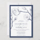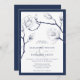 Modern and elegant navy and white wedding invitation. Design featuring deep navy background, floral elements in shades of navy blue , and wedding details inside white frame. Add your event details using the template fields provided, then click "customise it" to edit this template.
