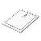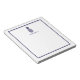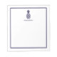 This stylish notepad features your name along with an elegant, navy blue pineapple and a matching border, on a white background.