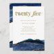 Elegant Navy Blue Agate and Gold | 25th Birthday Invitation