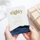 These elegant, trendy 80th birthday party invitations feature a dark, navy blue agate geode look, with faux gold modern text that says "eighty."