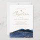 Elegant Navy Blue Agate with Gold Cross | Baptism Invitation