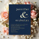 Elegant Navy Blue Ampersand Wedding Gold Foil Invitation.