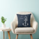Add some joy to your bedroom with this customised and unique navy blue throw pillow. This design features white typography of a custom family name and an illustration of a white anchor and rope on a deep blue navy background. Choose favourite fabric and style and buy it now or give it as a perfect nautical gift.