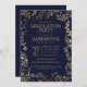 Elegant Navy Blue and Gold Floral Graduation Invitation