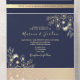 Elegant Navy Blue and Gold Floral Wedding All In One Invitation