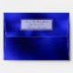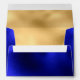 Elegant special occasion envelope done in graphics of a navy blue foil look, on the outside, and a gold foil, on the inside of the envelope. Gold edged white text areas for addresses, with fully custom black text, on the backside.