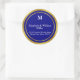 Elegant Navy Blue and Gold Monogram Address Classic Round Sticker