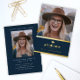 An elegant foil pressed graduation invitation featuring a large photo with graduation cap and minimal editable text on the front. The back has a vertical photo and a place to use to announce the graduate and party details.