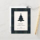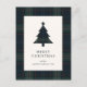 Modern Christmas postcard featuring a timeless design with a Christmas tree with a muted navy blue and green plaid pattern along with the greeting, "Merry Christmas". Use the template to add your personalised message.