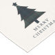 Modern Christmas table runner featuring a timeless design with a Christmas tree with a muted navy blue and green plaid pattern along with the greeting "Merry Christmas".