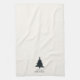 Modern Christmas kitchen towel featuring a timeless design with a Christmas tree with a muted navy blue and green plaid pattern along with the greeting "Merry Christmas".