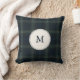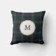 Modern Christmas throw pillow featuring a timeless design with your monogram over a muted navy blue and green plaid background.