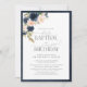 Elegant Navy Blue Blush Pink Baptism 1st Birthday Invitation