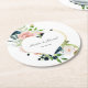 Elegant Navy Blue Blush Pink Rose Floral Wedding Round Paper Coaster