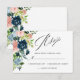 Elegant Navy Blue Blush Rose Floral Wedding RSVP Card