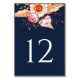 Elegant Navy Blue Boho Floral Wedding Table Number