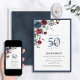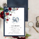 Elegant Navy Blue Burgundy Floral 50th Birthday Invitation