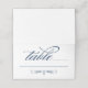 A classic wedding escort card featuring the word "table" in flowing navy blue calligraphy script with an ornate scroll flourish on a crisp white background. The deep navy ink and graceful penmanship add timeless sophistication to your reception seating. Each tent-fold card arrives pre-scored, and guest names and table assignments are filled in by hand.