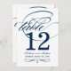 NOTE: Each table number card must be customised and individually added to the shopping cart. Elegant card includes a flourished monogram with navy blue calligraphy and scroll design accents. Two sided design.