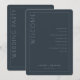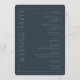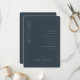 This wedding program features a sleek, minimalist design with a deep navy blue background and crisp white text. The layout is vertically orientated, divided by a thin line, with "WELCOME" prominently displayed in bold serif font on the left side. On the right, a clean list of ceremony events is presented in an organised sans-serif format, creating a modern and sophisticated look. Customisable placeholders for names and dates allow personalisation, making it perfect for any formal wedding occasion. The overall mood is elegant and anticipatory, ideal for couples seeking a refined and contemporary aesthetic.