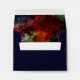 An elegant navy blue envelope which is self-addressed with soft cream gold text. This envelope is lined with a vibrant moody blue, green and burgundy watercolor design.