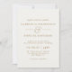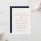 This elegant wedding invitation features a chic modern design. The front is a cream with a modern gold typography, while the reverse side is a dark navy blue with your initials in a gold typography.