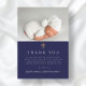 Elegant Navy Blue Cross Boy Baptism Photo Thank You Card