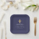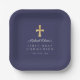 Elegant Navy Blue Cross Boy First Communion Paper Plate
